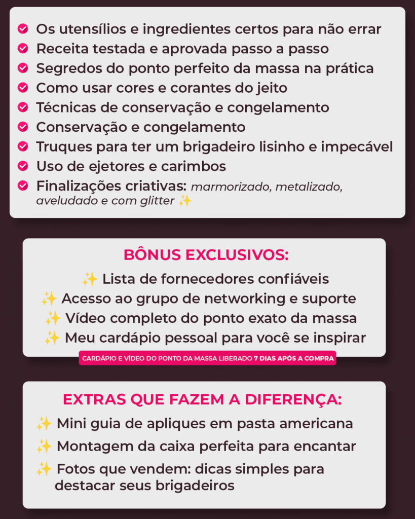 Dentro deste guia completo, você terá acesso a tudo o que precisa para criar brigadeiros personalizados de alto padrão, com acabamento impecável, sabor marcante e valor de vitrine premium.