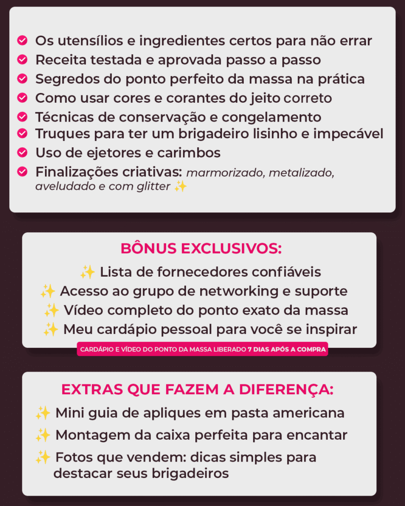 Domine todas as técnicas, ingredientes e segredos por trás dos brigadeiros premium que vendem sozinhos, mesmo para quem está começando agora na confeitaria